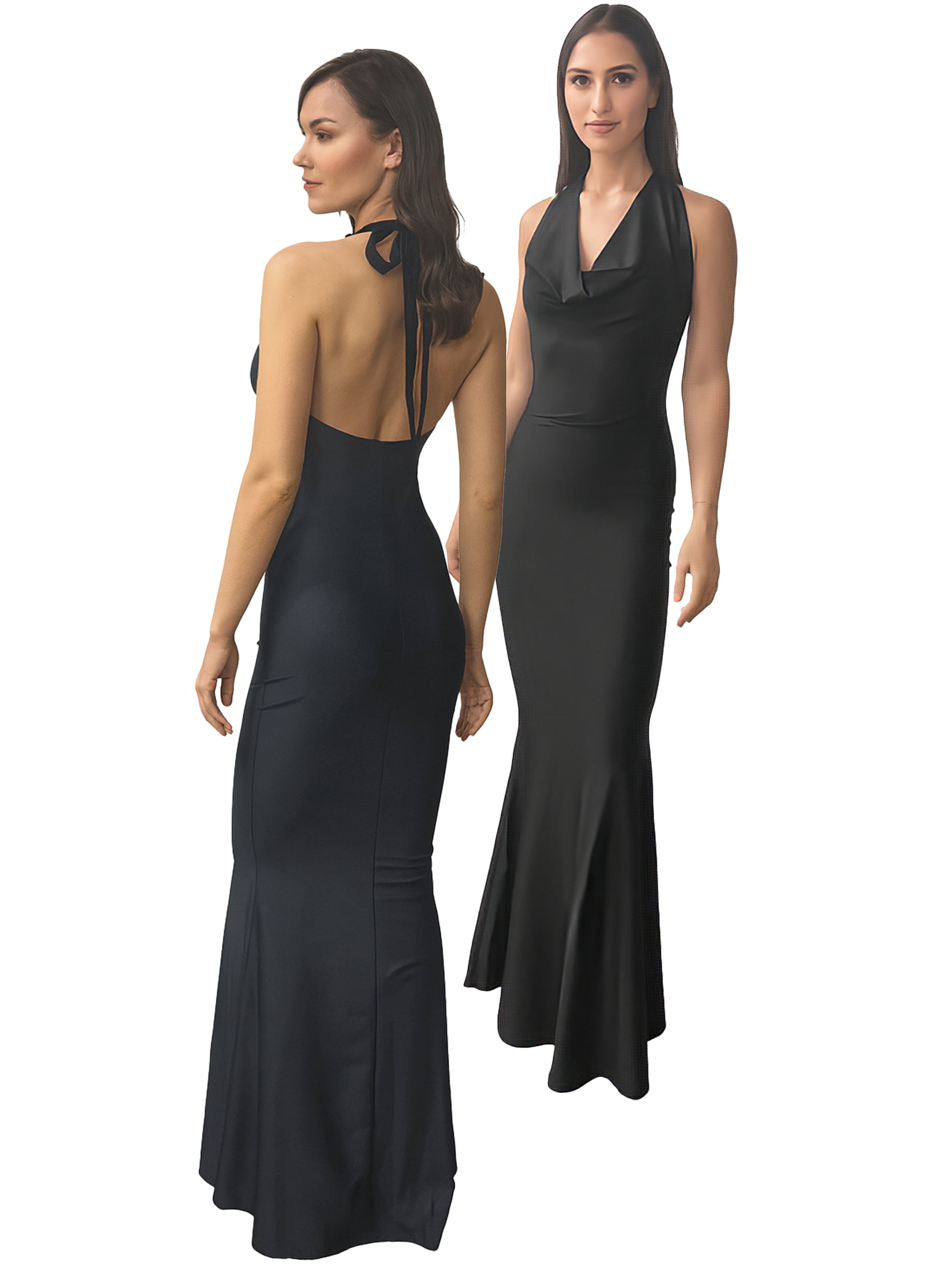 Diese Kleider sind elegant und schlicht zugleich. Der hautenge Schnitt aus dehnbarem Stoff betont die Figur und Kurven, wirft aber gleichzeitig dynamische Falten um die Füße.